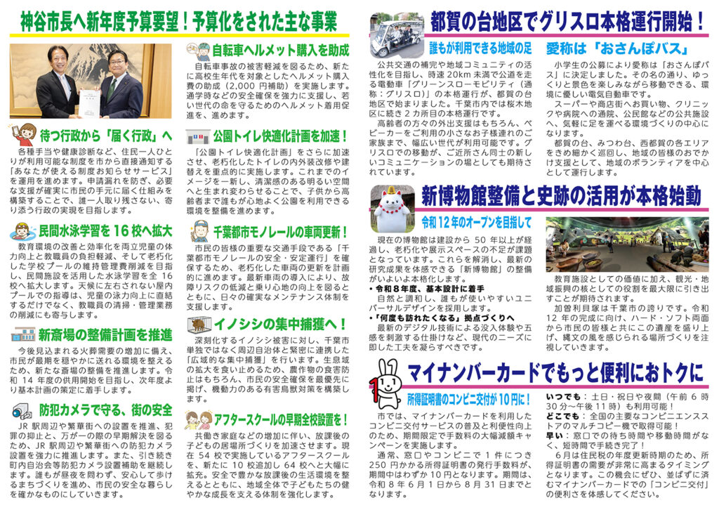 定例会をはじめとした市議会全般にわたる活動を、定例市議会終了後に新聞折り込みやポスティングで皆様にお届けしています。